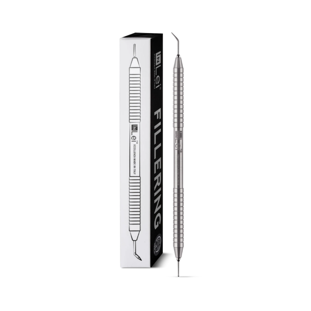 InLei® Fillering on kaksipäinen monitoimityökalu, joka tuo monipuolisuutta InLei® Lash Filler- ja Brow Bomber -hoitoihin. Tämän työkalun avulla voit sekä asetella ripset silikonirullalle että työstää kulmakarvoja tarkasti ja hellävaraisesti.